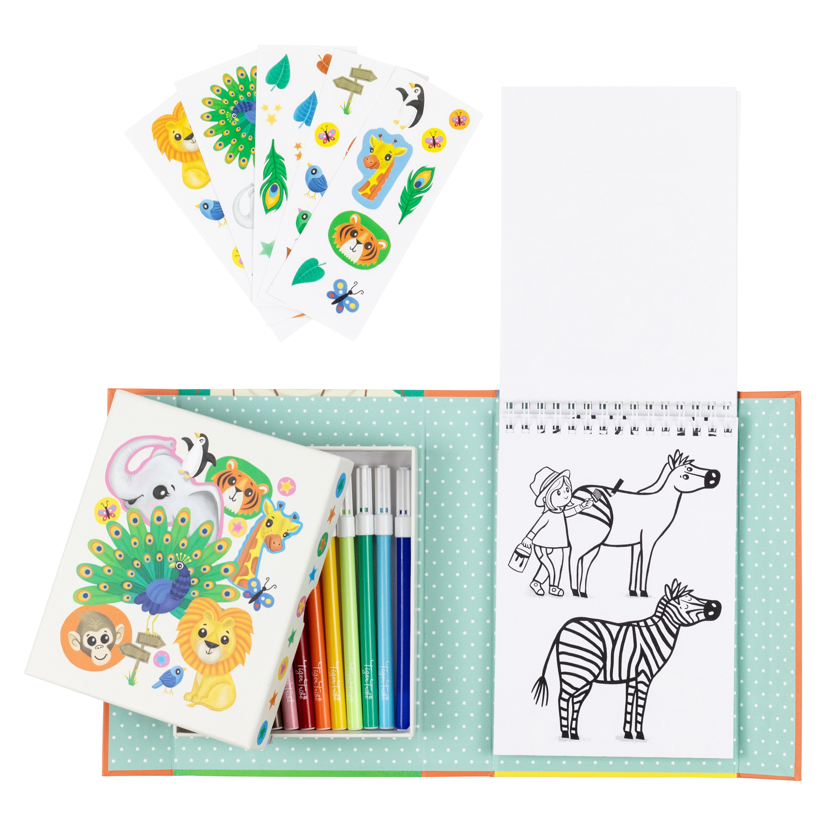 - Classic Tiger Tribe colouring set featuring fun zoo animal illustrations