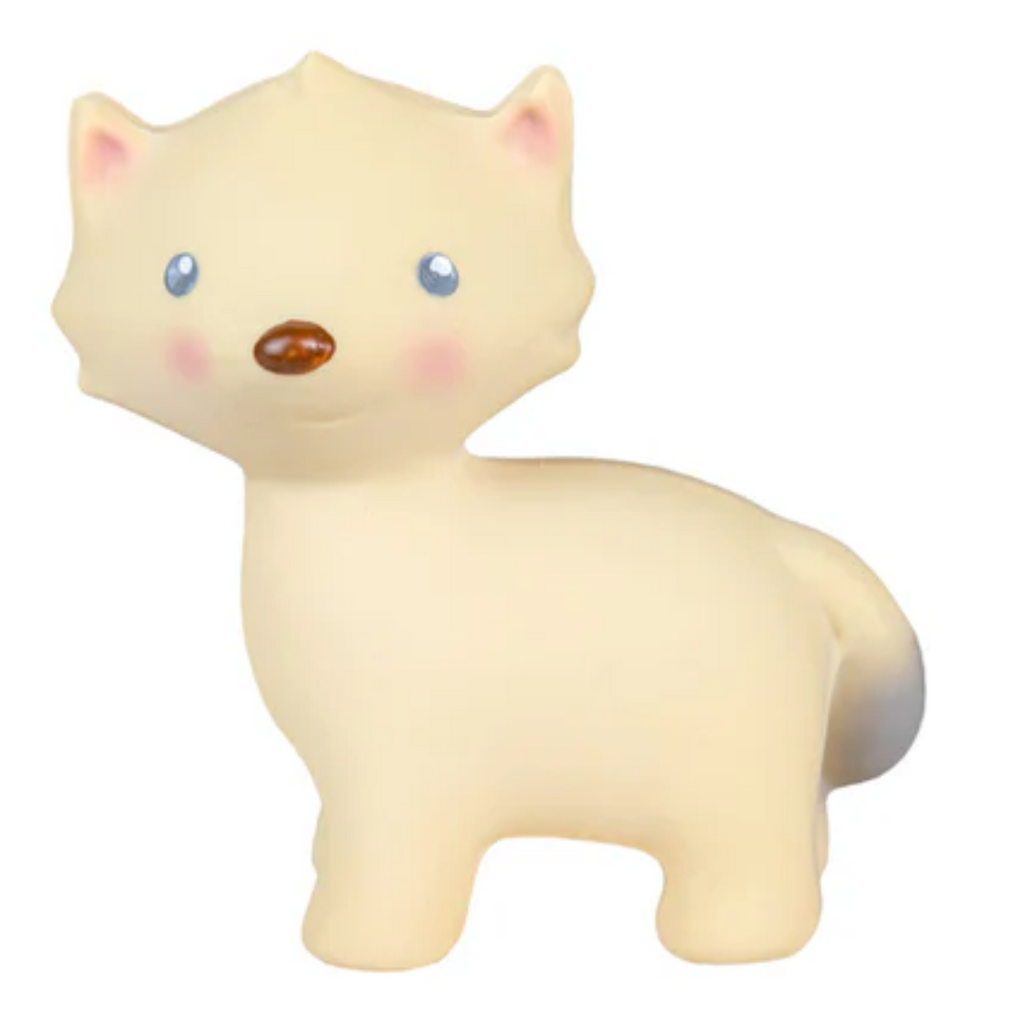 An adorable all rubber fox teether that is great for little hands to grab and squeeze. Features a little bell that rattles inside to delight and entertain little ones. This fox's little ears are a perfect spot to chew on to relieve sore gums.